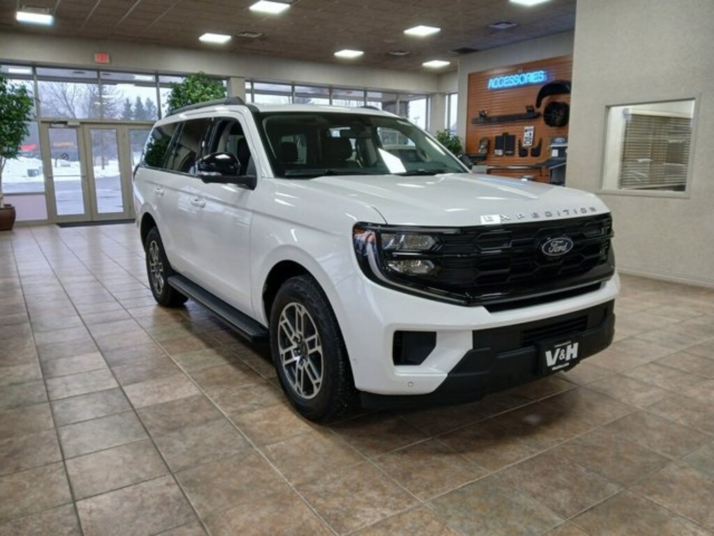 2025 Ford Expedition Active Star White Metallic Tri-Coat 4WD 10-Speed Automatic EcoBoost 3.5L V6 GTDi DOHC 24V Twin Turbocharged Expedition Active, 4D Sport Utility, EcoBoost 3.5L V6 GTDi DOHC 24V Twin Turbocharged, 10-Speed Automatic, 4WD, Star White Metallic Tri-Coat, Dark Gray Premium Synthetic.