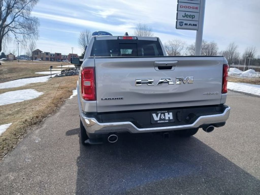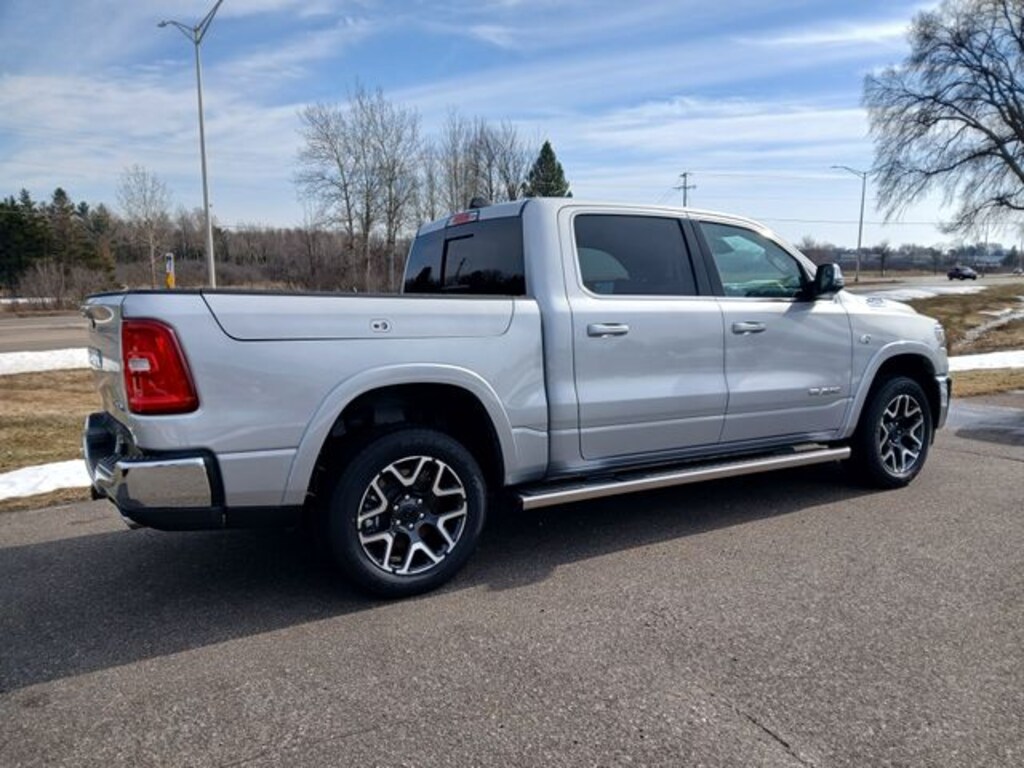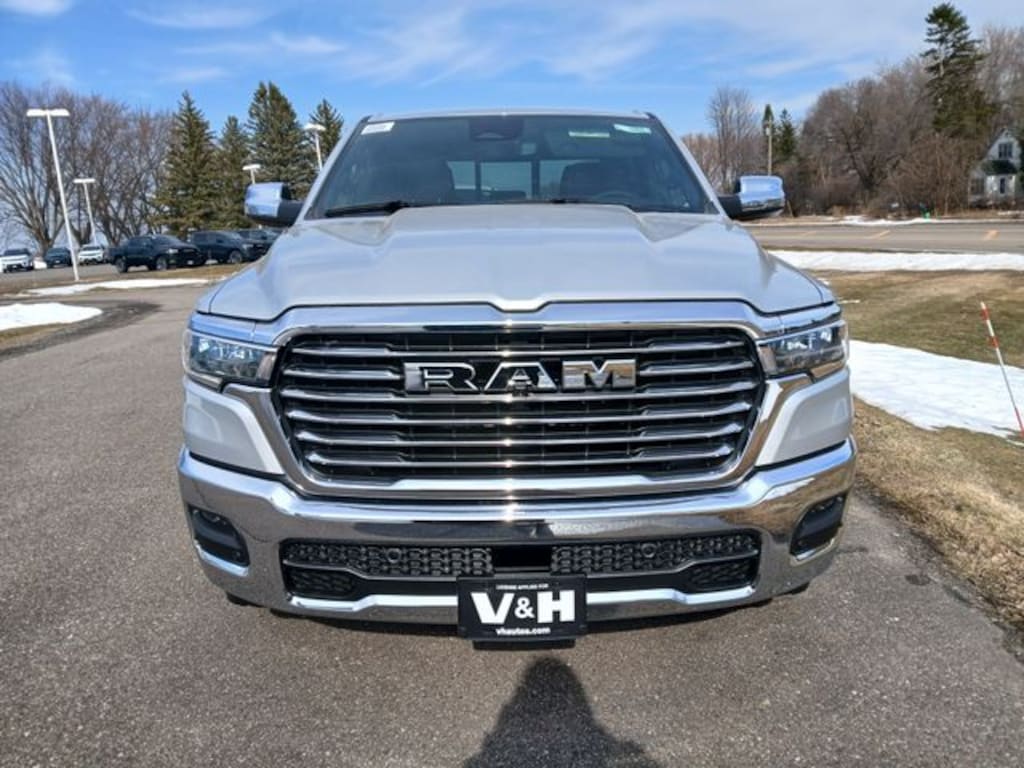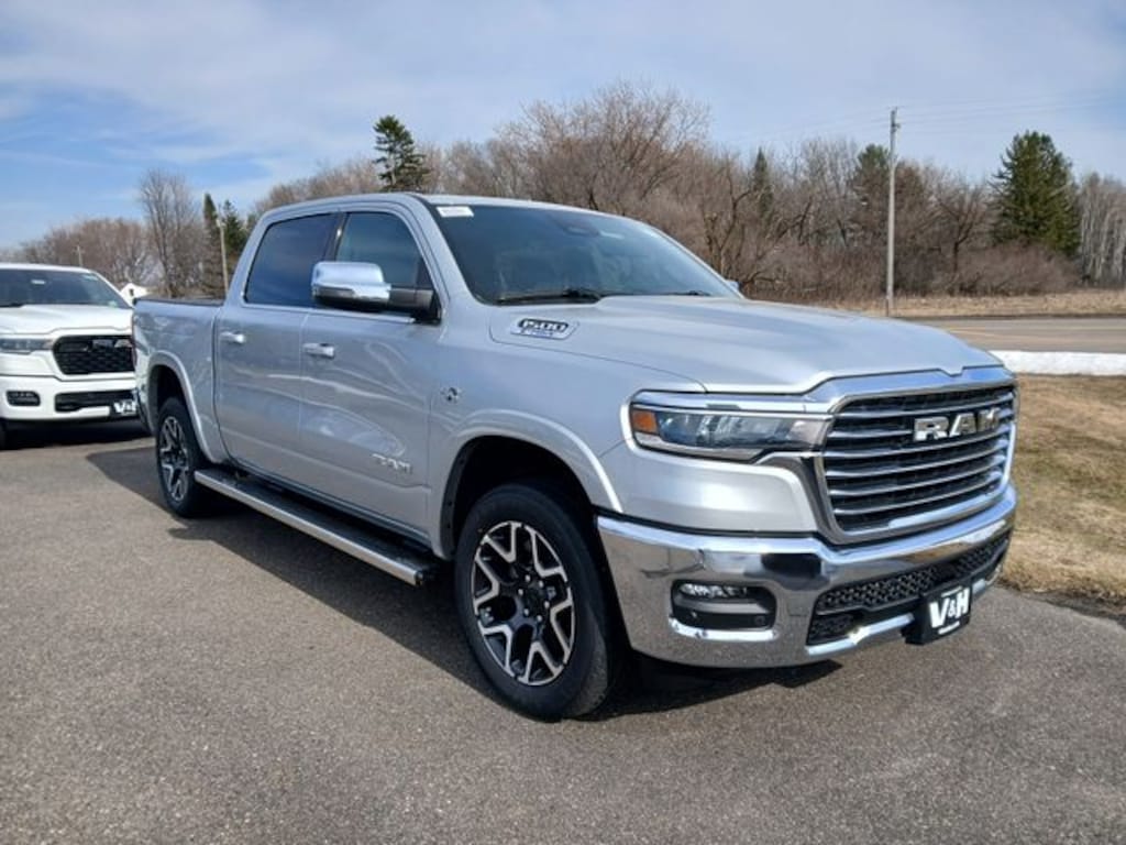 2026 Ram 1500 Laramie Silver Zynith 4WD 8-Speed Automatic HEMI 5.7L V8 Multi Displacement VVT eTorque 1500 Laramie, 4D Crew Cab, HEMI 5.7L V8 Multi Displacement VVT eTorque, 8-Speed Automatic, 4WD, Silver Zynith, Black Leather. Price includes the following incentives: $3500 - 2026 National Retail Bonus Cash . Exp. 04/30/2026
