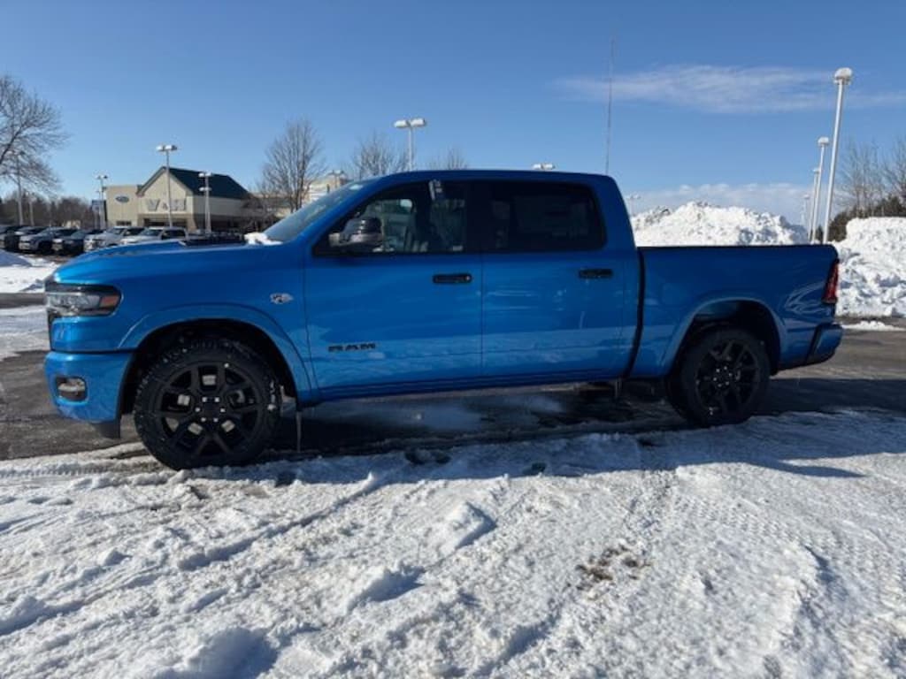 2026 Ram 1500 Laramie Hydro Blue Pearlcoat 4WD 8-Speed Automatic HEMI 5.7L V8 Multi Displacement VVT eTorque 1500 Laramie, 4D Crew Cab, HEMI 5.7L V8 Multi Displacement VVT eTorque, 8-Speed Automatic, 4WD, Hydro Blue Pearlcoat, Black Leather. Price includes the following incentives: $3500 - 2026 National Retail Bonus Cash . Exp. 04/30/2026