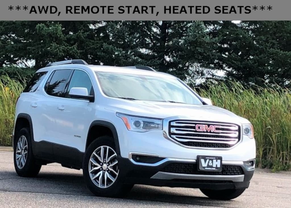 Clean CARFAX. White Frost Tricoat 2017 GMC Acadia SLE-2 AWD 6-Speed Automatic 2.5L 4-Cylinder DGI DOHC VVT Acadia SLE-2, 4D Sport Utility, 2.5L 4-Cylinder DGI DOHC VVT, 6-Speed Automatic, AWD, White Frost Tricoat, Gray Cloth.