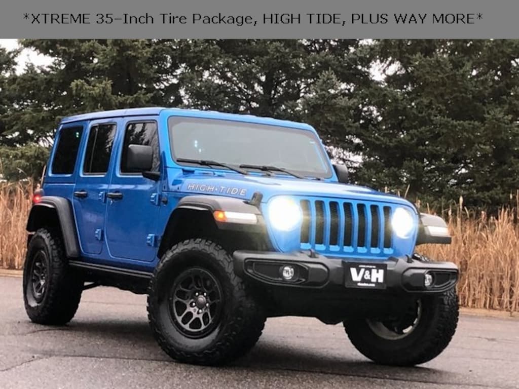 CARFAX One-Owner. Clean CARFAX. Hydro Blue Pearl Coat 2023 Jeep Wrangler High Tide 4WD 8-Speed Automatic 3.6L V6 24V VVT XTREME 35Inch Tire Package, Windshield with Gorilla Glass, Wrangler High Tide, 4D Sport Utility, 3.6L V6 24V VVT, 8-Speed Automatic, 4WD, Hydro Blue Pearl Coat, Black Cloth, Heated Steering Wheel, MOPAR HD Rock Slider w/Step Assist (DISC), Wheels: 17" x 8" Beadlock Capable.